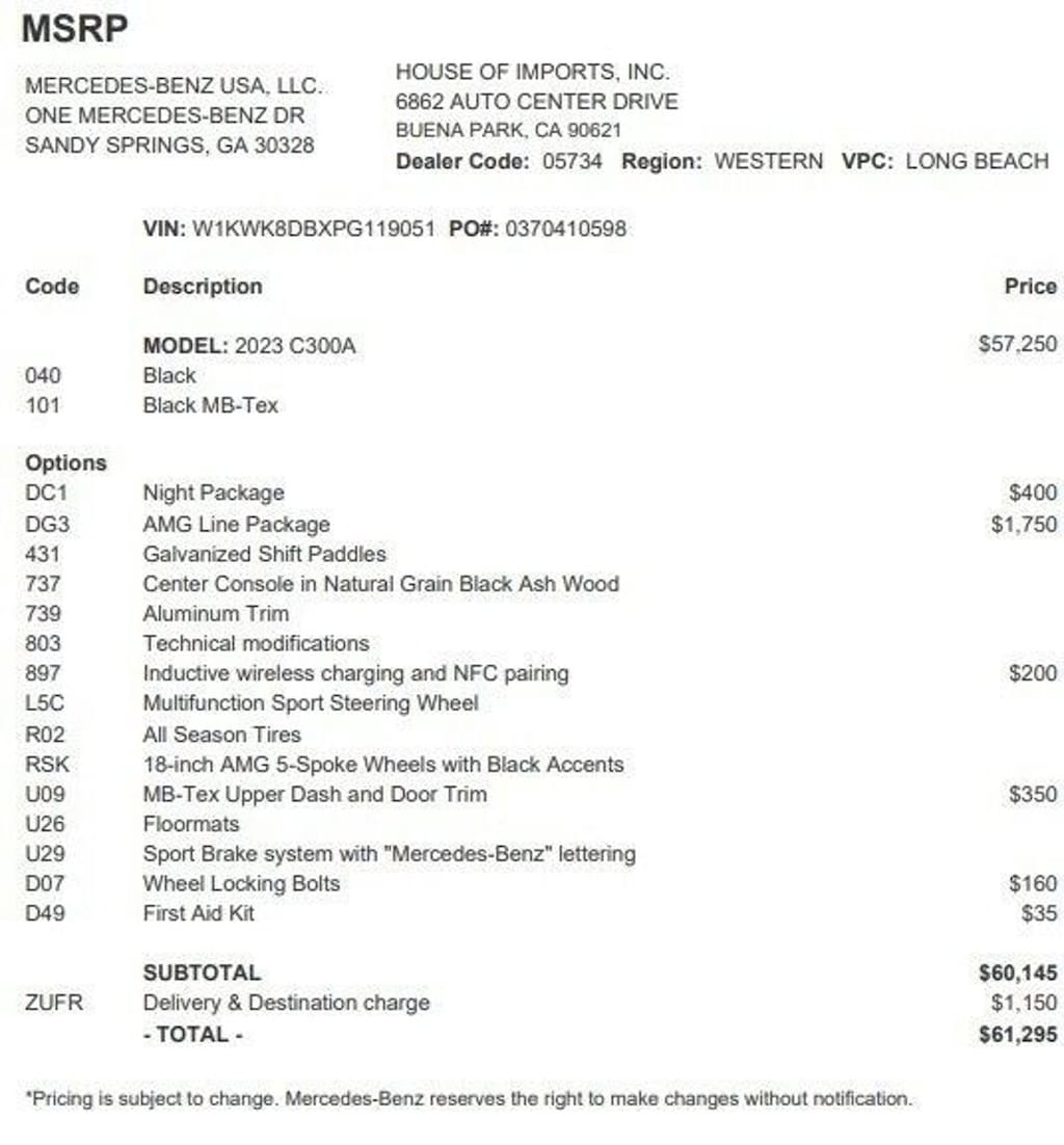 Accessories and color may vary. Quoted price subject to change without notice to correct errors or omissions. New vehicle pricing may already include applicable manufacturer special offers which may expire at any time. Manufacturer special offer data and vehicle features is provided by third parties and believed to be accurate as of the time of publication. Please contact the store by email or phone for details and availability of special offers. Sales tax or other taxes, tags, registration fees, government fees, smog certificate of compliance or noncompliance, emission testing charge, electronic filing fee, and $85 dealer document preparation charges are not included in quoted price.
