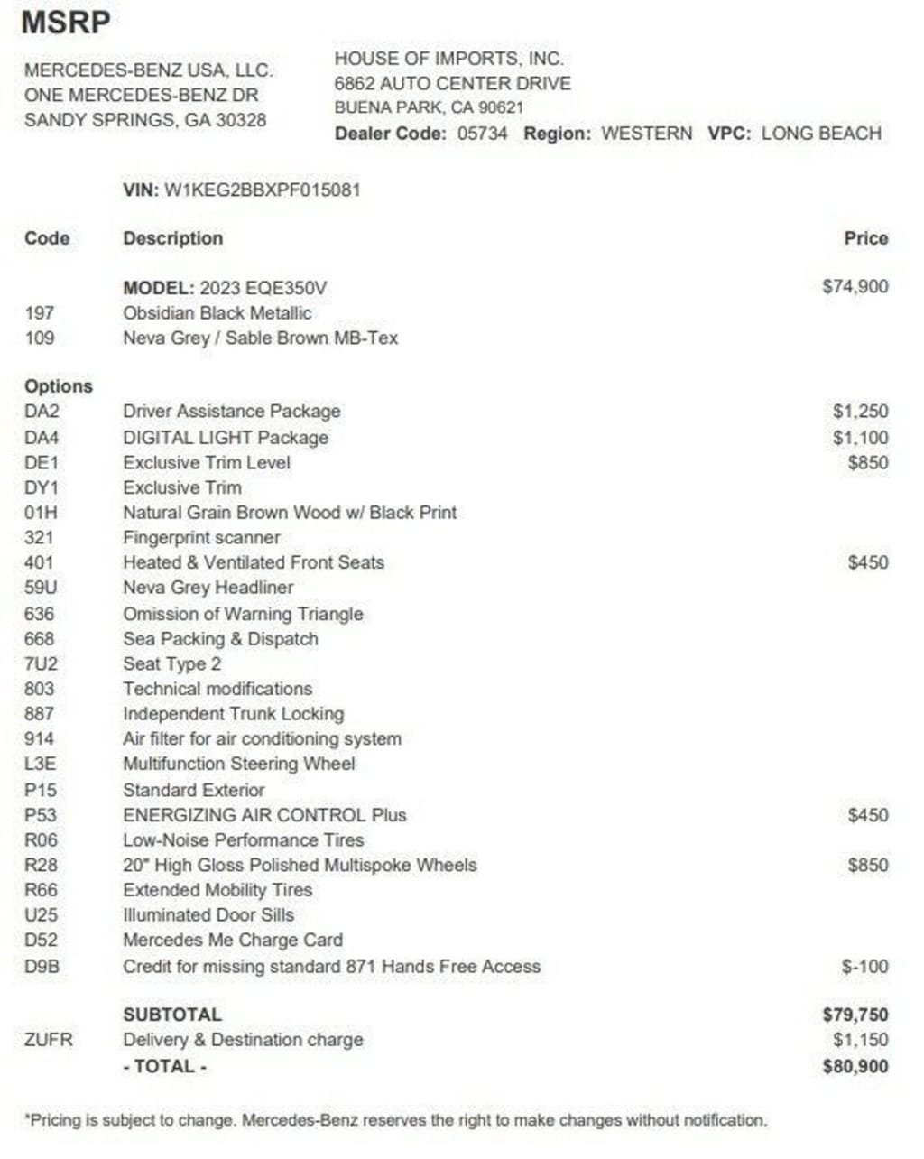 You can finally stop searching... You've found the one you've been looking for. Surprising quality accompanied by a high level of performance...this Obsidian Black Metallic on Neva Grey/Sable Brown Mercedes-Benz EQE EQE 350+ could end up being the perfect match for you. Just what you've been looking for. With quality in mind, this vehicle is the perfect addition to take home. The Mercedes-Benz EQE EQE 350+ will provide you with everything you have always wanted in a car -- Quality, Reliability, and Character.