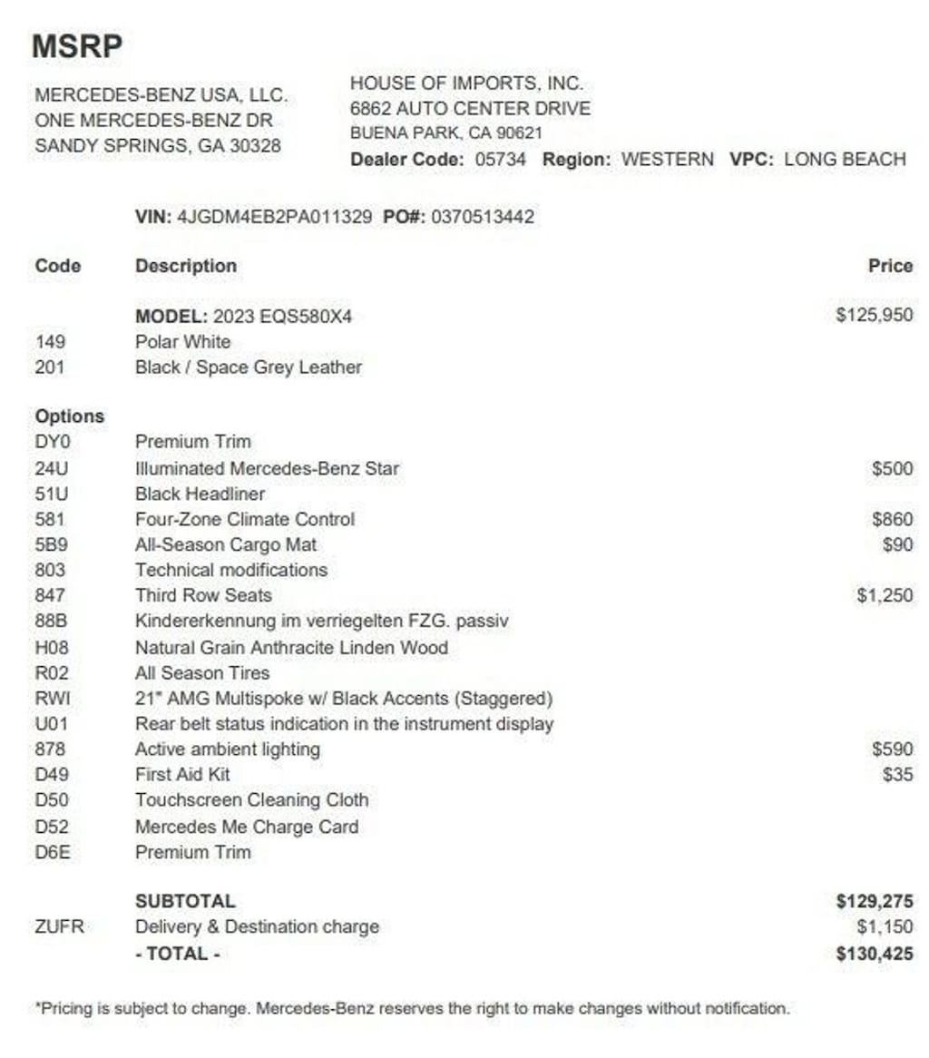 Perfect for the on-the-go family, this Mercedes-Benz EQS EQS 580 is an SUV everyone will love. With exceptional mileage, options and power, you'll insist on driving it on all your outings. All-wheel drive means peace of mind all the time. This Polar White AWD Mercedes-Benz enjoys a host offeatures, including exceptional acceleration and superior stability so you can drive with confidence. You've found the one you've been looking for. Your dream car. The look is unmistakably Mercedes-Benz, the smooth contours and cutting-edge technology of this Mercedes-Benz EQS EQS 580 will definitely turn heads.