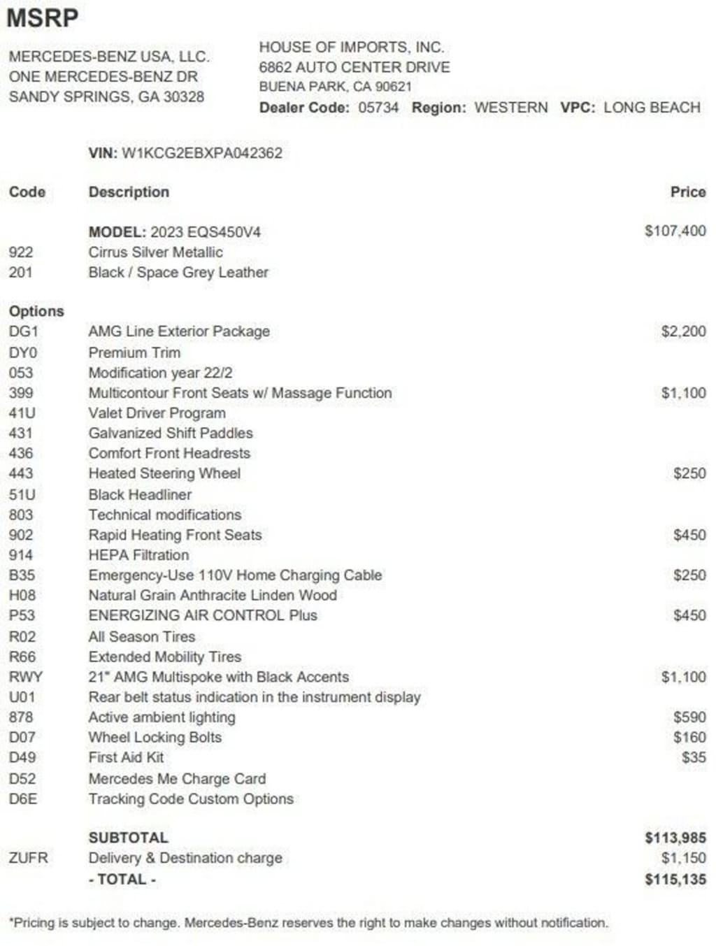 This AWD-equipped vehicle will handle beautifully on any terrain and in any weather condition your may find yourself in. The benefits of driving an all wheel drive vehicle, such as this Mercedes-Benz EQS EQS 450, include superior acceleration, improved steering, and increased traction and stability. This is about the time when you're saying it is too good to be true, and let us be the one's to tell you, it is absolutely true. This vehicle won't last long, take it home today. There are many vehicles on the market but if you are looking for a vehicle that will perform as good as it looks then this Mercedes-Benz EQS EQS 450 is the one!