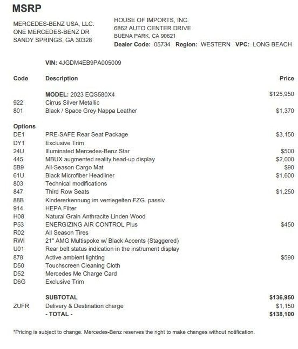 As a compact SUV, this vehicle packs all the performance of a full-size into a package that easily navigates the urban terrain. This AWD-equipped vehicle handles well in any weather condition or terrain. You'll benefit from superb handling, improved steering and excellent acceleration. The Mercedes-Benz EQS EQS 580 will provide you with everything you have always wanted in a car -- Quality, Reliability, and Character. The quintessential Mercedes-Benz -- This Mercedes-Benz EQS EQS 580 speaks volumes about its owner, about uncompromising individuality, a passion for driving and standards far above the ordinary.