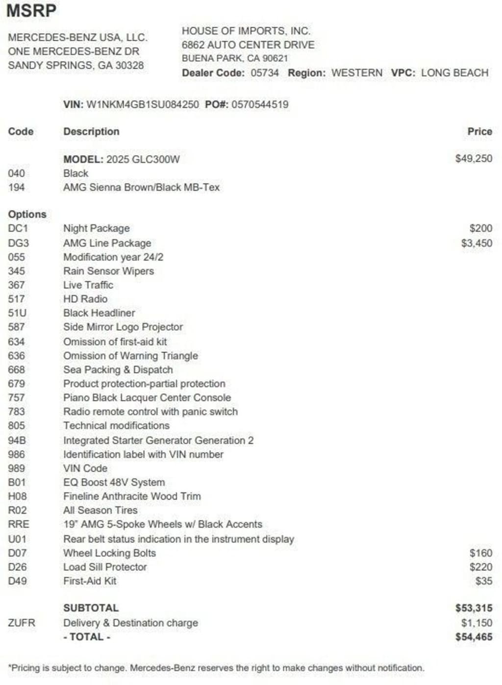 The Mercedes-Benz GLC GLC 300 offers a fair amount of utility thanks to its advanced features and unique styling. It's also quite sporty, and injects an ample amount of handling chutzpah into the ridin'-high body of a family-friendly SUV. You could spend more on fuel each month than on your vehicle payments, so why not consider one with exceptional fuel economy like this 2025 Mercedes-Benz GLC. You could keep looking, but why? You've found the perfect vehicle right here. This vehicle won't last long, take it home today.