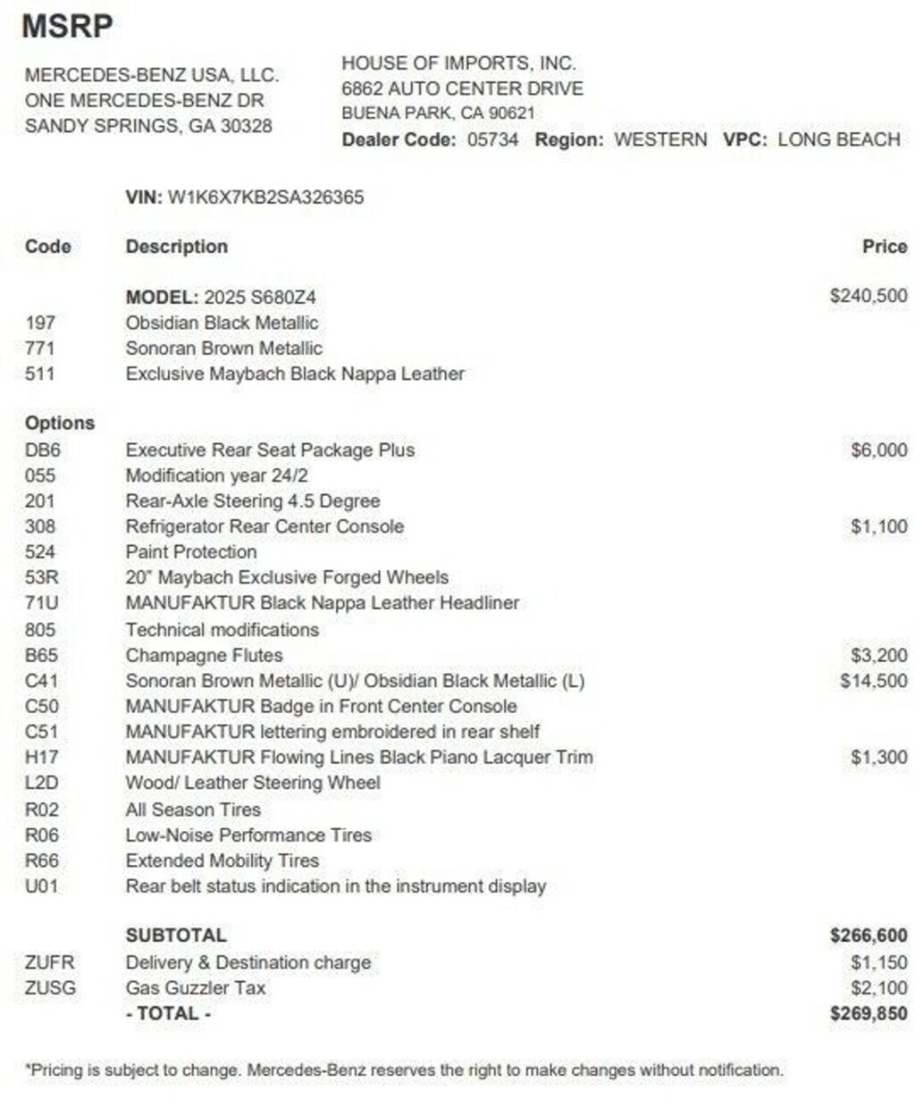 - Black; Maybach Exclusive Nappa Leather Upholstery